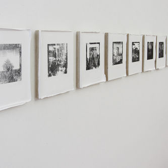 2. Sem título. 10 trabalhos de transferência sobre base de gesso acrílico em compensado. Dimensões de cada trabalho: 20 x14x2,5 cm. (2015, inédito)