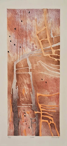 Na obra de Renina Katz, a paisagem constitui um campo contínuo de investigação que atravessa toda a sua trajetória, deslocando-se gradualmente da observação do mundo visível para uma elaboração cada vez mais estrutural. Desde as primeiras gravuras, em que ainda se reconhecem referências ao ambiente natural, até as composições mais sintéticas dos períodos posteriores, a paisagem deixa de ser apenas representação para tornar-se problema plástico: um modo de organizar linhas, planos, ritmos e tensões. Nesse percurso, montanhas, horizontes e cidades se transformam em estruturas geométricas e campos de cor. Mais que um cenário, a paisagem se torna um território onde se articulam percepção, memória e pensamento visual. Katz retorna a esse motivo de maneira insistente, reinventando-o a cada fase e convertendo-o em eixo fundamental de sua pesquisa sobre forma, cor e composição.